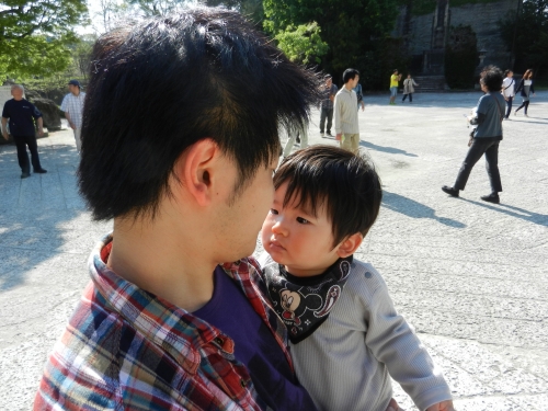 大仏様の大きさにビックリしたのかパパを見つめる息子くん♪ 天気の良い日のお出かけは気持ちがイイね