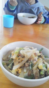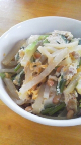 野菜が食べたい あ、納豆が期限だぁ そんな日のランチ 『納豆と大根の玉子とじ』 2人分 大根 3cm 椎茸 3枚 納豆1ヶ 青菜 1/2袋 油 小さじ1 卵 2ヶ 麺つゆ 大さじ34(お好みで) 水 200cc ①野菜は火が通りやすいように薄くきる ②フライパンに油を入れ、椎茸大根を香りがたつまで炒める ③そこに納豆青菜を入れ、煮汁で煮込む ④大根が好みの硬さになったら、溶き卵でとじたら出来上がり 納豆のたれも煮汁に入れてね( ̄▽+ ̄) 息子も美味しく食べてくれましたよ 小さなお子さんがいる家庭は、野菜を小さく切るといいですよ 【ご新規さんも歓迎】会員10,000名様突破感謝企画★ワッフル大おあじみ会★ ワッフル美味しそうだね^^ 続きを見る ['close']