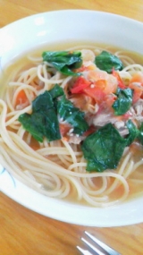 寒い 今日も雪 福岡なのになぁ雪多いよね そんな日の昼は、“和風スープパスタ”です ここは、手抜きにフライパンで一気に仕上げます 2人前 鍋に1Lの湯を沸かして、小さじ1塩を入れ、パスタを茹でます ここに、麺つゆ 大さじ4(お好みで) ツナ缶 1缶も入れてにますよ その間に、ほうれん草(冷凍)トマトを食べやすい大きさにし、 茹であがる2分前に入れます ここで、味見してOKなら出来上がり^^ 最後に、オリーブ油をたらすと香りがいいですよ 早く、風邪治るといいな 【亀城庵】期間限定!リピーター続出の超極太麺(超極太うどん)ご試食モニター募集♪ 続きを見る ['close']