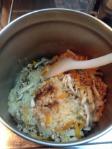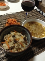 *海の精 「炊き込みご飯の味」使用のご飯*人参とレーズンのサラダ*モヤシのスープ*赤ワイン久しぶりに娘が帰ってきたので、晩ご飯はシンプルな“お家ご飯”に海の精 の「炊き込みご飯の味」を使用して、炊き込みご飯を作った具材はシメジ、人参、油揚げ、鶏そぼろで、通常通りの水加減に1合あたり1袋の調味液(今回は2合なので2袋)を入れて炊くだけと超簡単!普通に炊飯器で炊けばokなんだけど、今回は“保温調理鍋”で炊いたうちの夫は 白いご飯が好きなので、炊き込みご飯も少ししか食べない炊飯器は普通の白ご飯を炊く用に使用したためだ ←面倒くさいことに…鍋に洗った米を入れて、通常の水加減に調味液を入れて、軽く混ぜてから具を乗せて、ガスにかけて沸騰したら中火で10分加熱その後、火から降ろして保温用の容器に鍋ごと入れて15分で出来上がり具を崩さないように優しく混ぜればokガスで炊いたから、少し おコゲが出来るのが、またいいんだよねー仕上がりは味の方は…優しい 味化学調味料や砂糖も使っていないし、伊豆大島の海水から作った伝統海塩「海の精」や国産丸大豆から作った生しぼり醤油がいい味を出しているのだろうだしは北海道産の利尻昆布や九州産しいたけから取ったもので、紅玉梅酢も使用しているとの事素材にこだわった体に優しい炊き込みの素だというのがわかる気がするとがった感じがない、丸みのある味で、ほっこりするこういう味だと、その他の副菜の味もしっかりわかるから、トータルで美味しいご飯になるんだろうなぁと思った娘は帰ってから、体が熱いというので、熱を測ったら385℃もあったでも、ご飯はしっかり食べたから驚きちょうど脂っこくない、ほっこりした献立が良かったみたいだ海の精ショップファンサイト参加中↓↓↓ よろしければ、1クリックお願いします人気ブログランキングへiPhoneからの投稿 続きを見る