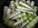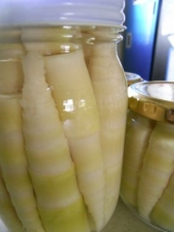 > 今度は大名竹 みなさん〜「大名竹」って知っていますか?九州を中心に自生する大名竹は、タケノコの王様と言われていてよく幻のたけのこというふれこみでグルメ番組に登場するほど非常に柔らかく、風味がよいので皮を剥いたものをスライスして、酢味噌で食べるとそれはもうあく抜き無用なので、下準備は皮をむくだけなんですよ〜我が家では、おみそ汁炒め物てんぷら素焼きなど大活躍しています名の由来は、これを食べた殿様が「これはうまい」と太鼓判を押したということに始まるとか今日は、たくさん採れたので水煮を作りました上の柔らかい部分のみを瓶詰めしましたよ〜まぁ〜贅沢今年のお中元は、手作りの保存食を贈るかも〜みまさんは、お中元に何をあげますか 【今年のお中元に何あげますか?】 ←参加中 焼かりんとう2袋入ギフトBOX 【麺づくり本舗なかはし】冷し中華ぁ〜第2弾♪猛暑を涼しい麺で乗りきるモニター募集 Tweet 20110705 Tuesday うちごはん 20… 続きを見る ['close']