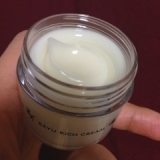 馬油のクリーム、リモイストクリーム<リッチタイプ>を使っています 馬油は、これまでに実はあまり使った事がなく、ハンドクリームくらいかな この「リモイストクリーム<リッチタイプ>」も全身にも使えるということですが、今のところ、主に顔ケアに愛用しています パッケージはこんな感じ は、派手… 中華っぽいパッケージを外すと… こんなにすっきり うん、これくらいの大人しさが普段使いには合ってます むしろ、千円くらいの物なのに、ちょい高級感ありません 中身は透ける感のあるジェルっぽい白いクリーム 指にとってみると、こんなにとろりしています 指ですくってみて、真っ先に思ったのが、シュークリームに入ってるカスタードクリーム!カスタードクリームみたいなとろり感しかも、ぷるん♪としてます これを豆粒くらい指で取って、顔全体になじませます すると…さっき指ですくった感触に比べ、意外とこってりしています 油なので、少しベタつきます髪がはりつく事も でも、こんな事を言うと絶対嘘っぽいと思われると思うけれど…塗った直後に、すでに肌がふっくら弾力増している気がします これは良い 少しベタッとするので、朝のメイク前には使っていません夜塗って寝ると、翌朝もしっとり ちゃんと潤いを閉じ込めていてくれたのね 敏感肌&乾燥肌の私にもピッタリです夏に向けて使うには少々重たいクリームですが、年中保湿には力を入れたいので、使い続けます 顔に塗った後、手にもすり込んでいるので、手もしっとりツヤツヤになります 髪の毛先にもいいのかなぁ??身体の乾燥しやすい箇所にも塗って試してみたいです 値段もプチプラで続けやすい価格なので、ぜひともオススメです 明色化粧品ファンサイト 続きを見る