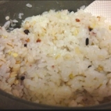 雑穀米ご飯が身体に良いとは知ってはいたものの、家ではあまり食べた事がなく、今回初めて自宅で雑穀ごはんを炊きました 「くらしいきいき」の毎日十八雑穀ですなんと、100%国内産ですこのように個装になっていて、1袋をだいたい23合分の米と一緒に炊くだけです 18ってスゴイ… すべてご紹介すると…押麦、発芽玄米、アマランサス、黒大豆、はだか麦、青肌玄米、もち麦、もち玄米、黒米、緑米、赤米、もちきび、もちあわ、ひえ、はと麦、たかきび、小豆、大豆(全て国産) だそうです白米に比べて栄養価が高い 初めての雑穀米、せっかくだから、ただ炊くだけではなく、何か特別なメニューを…と考え、 雑穀米トマトリゾットをつくりました 雑穀米とみじん切りにしたコンニャクで作ったダイエット料理です コンニャクは茹でた後、みじん切りにしておきますコンニャクの量はけっこう多くても大丈夫!ご飯2合分に対して半分入れても問題なし フライパンにオリーブオイルを熱して、みじん切りにした玉ねぎとニンジンを炒めますコンニャクも投入してさらに炒めます 炊いておいた【毎日十八雑穀ごはん】を加えて炒めます 炊きたてご飯 ここにミックスビーンズを入れて炒めます ホールトマトの缶詰めを1缶入れて炒めます 和風だし、塩、こしょう、しょう油を加え、混ぜます できあがり 「毎日十八雑穀」は、普段お米を研ぐ時に1袋を混ぜるだけ! リゾットにしても、食感が崩れる事なく、もちもちとして美味しいです もちろん、普通に食べても美味しいですよ その後、私は、このリゾットをお弁当にしようと思って、さらに一手間加えました お弁当にリゾットを持って行こうとすると、スープを吸ってしまう… そこでコンビニにあるスープや鍋を思い出して、ゼラチンで固めちゃいました ただし、スープとご飯を別々にして作りました そして、職場のレンジであたためるだけ見た目もキレイで、お米の歯ごたえもそのまま とっても美味しいですよ!ぜひお試しあれ お弁当はこんな感じこれも「毎日十八穀」を使っています 今回、使用したのはコチラ くらしいきいきくらしいきいき ユーグレナ専門店ファンサイト 続きを見る