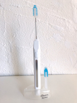 「KISS YOU」の音波振動歯ブラシIONPA homeを使用しました電気の力でマイナスイオンを毛先から放出し、歯についた歯垢を落とし、歯周病予防をするというものです KISS YOU パッケージはこんな感じです 嬉しい電池とスペア、歯ブラシスタンドがセットになっています電池は単4電池2本です重いけれど、どこにでも売っている一般的な電池なので助かります 透明の歯ブラシスタンドには電動歯ブラシとスペアのヘッドが2つ収まるようになっています家族で使用している人は便利かもしれませんね私は一人で使用するので、ここのスタンドに常時スペアを置いて飾っておくのは衛生的にちょっと嫌なので、スペアが入るスペースは空けておきます^^; 色はブラックとホワイトの2色展開のようですが、白で良かった!新品のせいもありますが、真っ白な歯ブラシは清潔感がありますスタンドはちょっと頼りないかな普段家で使っている歯ブラシスタンドを使用してもいいですね 毛先を水につけてから電源をONにして使用します銀色のプレート部分に触れることでマイナスイオンが発生するみたいです 歯磨き粉は少しだけつけました付けなくてもいいみたいですが、磨き終わった後のスースーした感じが「歯磨いた!」って気分になれるので必ず歯磨き粉は使います 細かい振動で歯をなでるようにして磨きましたヘッドが大きくないので奥歯の方まで磨きやすかったです 磨き終わってから、舌で確かめるとツルツル♪力を入れなくてもキレイに磨けましたこれから歯磨きタイムが楽しみになりました^^ アイオニック 音波振動歯ブラシ 「KISS YOU IONPA home」 D02WH ホワイ4,190円楽天 続きを見る ['close']