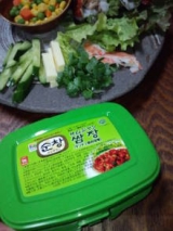 本格韓国調味料★チョンジョンウォン ファンサイト応援中 今日は手巻き寿司を作って食べました ご飯は「酢めし」と「韓国風ご飯」 勝手に「韓国風ご飯」って書いたけど、ご飯に塩と胡麻とごま油を入れて混ぜたものです 具は「焼肉(豚)」「シーチキン」「カニかま」「サニーレタス」「きゅうり」「かいわれ大根」「チーズ」「ミックスベジタブル」 写真では見えづらいかな 左下の手巻きに赤いのが見えるでしょ これは韓国の調味料で「スンチャンサムジャン」っていいます 緑色のパッケージに入っているんだよ 『スンチャンコチュジャン』に、水飴、薬味(唐辛子粉、食塩、にんにく、玉ねぎ)、やにんにく、胡麻、小麦粉、野菜エキス(にんにく、玉ねぎ、長ネギ)などを混ぜこんだ合わせ味噌 見た目で分かるように辛いお味噌です 「辛い」といっても火を噴くような辛さではないのでご安心を コレ、意外といけると思ったのが「チーズ」と「マヨネーズ」 辛さがマイルドになるので、辛いのが苦手な人お子様なんかにオススメです(b^) ご飯は「酢めし」より「韓国風ご飯」の方が合いました いや自分で言うのもなんだけど、美味しくって激うま料理でした 来月の節分に食べる「恵方巻き」 「スンチャンサムジャン」をまた使って作ろうかな 韓国風のり巻きも変わってていいかもしんない ちなみに今年の恵方は北北西 まるかぶりして福を呼び込みましょうねっ 続きを見る ['close']