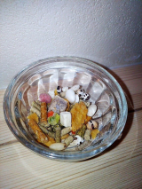 我が家のジャンガリアンハムスターさくらこの度モニターでミックスフードをいただいたので昨夜あげてみましたtshopjp/kojima/PG020ProductListPageact?categoryCd=&itemKey=%83v%83%8C%83~%83A%83%80%81@%83n%83%80%83X%83^%81[&keywordKbn=0&moni" rel="nofollow">大地の恵み La Terra リスハムスター プレミアムミックスフード“野菜”と“フルーツ”があり、我が家は“フルーツ”を試してみました一掴み出しただけでもこんなにもたくさんの食材が入っています“フルーツ”という名前ですがしっかり野菜も入っているし、その他にも豆腐や穀物など30種類もの食材が入っているようです家ではここまでたくさんの食材を与えてあげることはできないので、一度にバランスよくいろいろ食べさせられてありがたいですしかもこれだけたくさんの食材が入っているのにひまわりの種不使用!ハムスター=ひまわりの種を食べるというイメージがある方もいるかと思いますが、ひまわりの種は脂肪や糖分が多いためあげすぎると太りすぎたり病気になってしまったりすることもあるそうです美味しいのでとっても食いつきはいいんですが…ひまわりの種が入っていないことで偏らずいろんな物を食べてくれそう早速ミックスフードをケージに入れてみました発見して近づいてくるさくらパクっと少し食べてみていましたそのあとは砂浴びや回し車に夢中になっていたため、私たちは就寝餌皿を置いて今朝減り具合を見てみようということになりましたそして今朝、こんなに減ってたー!さくらちゃんたくさん食べたね今まではペレットに日替わりで野菜やお肉チーズにぼしなどをほんの少し入れて夜置いていたんですが、ペレットの食べが悪い時も多々ありましたこれならこんなに食べてくれて栄養バランスも良さそうだし助かる!朝の餌の減り具合に夫に「昨日餌ちゃんと入れた?」と聞かれました子供たちも「美味しかったんだねー!」と感動さくらちゃん、これからもいろんな食べ物たくさん食べて元気に育ってねコジマ通信販売ファンコミュニティファンサイト参加中 続きを見る