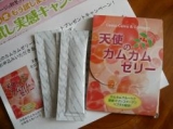 先日届いた『天使のカムカムゼリー』『カムカム』っていうんだからこんにゃくゼリーみたいに歯ごたえがあるんだろうか?って思ってたら『カムカムフルーツ』というフルーツがあるんだとか!!このカムカムフルーツは現在地球上で発見されている植物の中で最もビタミンCを多く含んでいるんだってそのカムカムフルーツに含まれている天然のビタミンCを使っているから安心して摂取できるカムカムフルーツなんて手軽に手に入るものじゃないからこのような形でゼリーに使われているのはありがたいそして以前から気になっていたコラーゲン分子の大きさ何かの番組で肌から摂取したり体内に摂取したりしてもコラーゲン分子が大きくて摂取できないとか『天使のカムカムゼリー』は低分子コラーゲンというから効率よく吸収されてお肌の状態にも早く成果があらわれそうな気がしますそしてさっそく食べてみた少々酸味があるが、普段飲んでいる粉末のビタミンCほどではないのでこれなら結構長続きしそうドリンクタイプと同じく手軽に食べれるのもいいスティックタイプなので冷蔵庫の場所を取らないし持ち運べるのは便利スティックにも賞味期限が書いてあったらありがたいかも美肌への近道カムカムフルーツに感謝!! “今日もありがとう”有機マカモラーダ100のバイオサプリファンサイト応援中 続きを見る ['close']