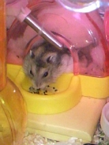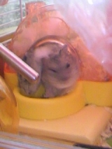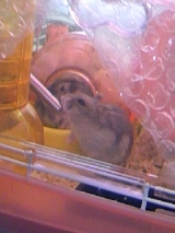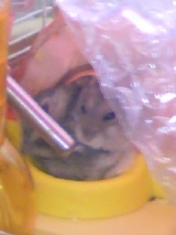 ジャンガリアン原種の“める”です ちょっとピンぼけ左側が“める”右側がジャンガリアンハムスターブルーサファイアの“あい”です ぎゅうぎゅう