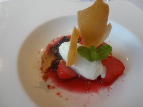 モンテールプリンにいちごやパイでデコレートしてクリスマスっぽく