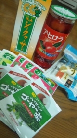 モニプラ様を通して 有限会社ビージェイt>さまより 『やんばる食いな』ドリンクセットを送っていただきました 沖縄北部地方を『やんばる(山原)』といい 天然記念物の鳥『ヤンバルクイナ』がこの地方に生息してるのにかけたネーミングです(笑) セット内容は ◎勝山シークヮーサー ◎アセロラドリンク (こちらの記事は★★ ) ◎ゴーヤー茶3種 ◎おまけの雪塩ちんすこう 沖縄ならではの健康ドリンクですよね 今日は『ハイサイ!ゴーヤー茶』名護市中山産 のご紹介 ゚・。。・゚゚・。。・゚ ゚・。。・゚゚・。。・゚ ゴーヤの種に多く含まれている共役リノール酸を体内に取りいれると 褐色脂肪細胞が活発になり、脂肪分解酵素の燃焼リパーゼをたくさん作り出します そして、血中に放出することで脂肪細胞内の溜まった脂肪から遊離脂肪酸が活発に作られます 遊離脂肪酸は筋肉で使われやすい形の脂肪ですので 溜まった脂肪を早くエネルギーに換えてダイエット効果を生み出します ゚・。。・゚゚・。。・゚ ゚・。。・゚゚・。。・゚ 沖縄県産のゴーヤを100%使用 添加物はいっさい使用されず、カフェイン、タンニンなどの刺激性成分も含まれていない どちらもティーパックになってます 紫乃さんは青汁が平気なんで どれもおいしく飲めましたよん 確かにどれも独特のにおいはしますが 苦味はいっさいありません しいて言うなら なにも入っていないゴーヤー茶が1番おいしかったです ウコン入りは甘くまろやかで シークヮーサー入りは後味に酸味を感じます こちらのゴーヤー茶にも苦労話があるようで…こちら シークヮーサー、アセロラ、ゴーヤー茶といただきましたが 使い勝手のいいシークヮーサーが1番気にいりました あっ おまけの『雪塩ちんすこう』 2010年モンドセレクション国際最高品質賞受賞だけあって めっちゃおいしかったです また、沖縄にいけたらいいな アセロラ倶楽部とEMX倶楽部ファンサイト応援中 続きを見る