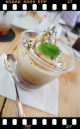 さらっとした軽めのつぶ餡6時間の水出しコーヒーソフトクリーム水出しコーヒーソフトクリームの順に重なってる