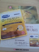 el="nofollow">Rikenサポートプラスファンサイト参加中理研ビタミンさんの ローヤルゼリーメカブフコイダンを飲みましたまず、理研ビタミンさんて有名ですよねふえるワカメちゃんとか 大好きです ローヤルゼリーはPMSとか、月経前緊張症や、更年期にもいいと聞きました私は結構ヒドイ PMSで、筋肉が強張ったり、イライラはもちろん、悲しくもなったり、食欲も増えたりとみんなが困ってるようなPMSの症状がありますローヤルゼリーは、そんなホルモンバランスを整えるのにもいいそうなんです蜂蜜を扱っている、ローヤルゼリー屋さんのお姉さんの情報ですその方は、お姉さんと言っても、50代位なので、更年期に悩んでいたそうなんですが、飲み始めてから全然違う「私、PMSで悩んでいるんです」と言ったら、ローヤルゼリーはいいわよとホルモンのバランスにもいいわぁって もちろん続ける事が大事なんですってそもそも、◆ローヤルゼリーとは◆ローヤルゼリーは、働き蜂が作り出す乳白色のクリーム状の物質です蜂は同じ卵から生まれたにもかかわらず、ローヤルゼリーのみで育てられた蜂のみが女王蜂へと成長しますローヤルゼリーは毎日2000個程度の卵を産み続ける女王蜂の驚異的な生命力を支えている源なのですローヤルゼリーには多くの栄養素が含まれていますたんぱく質、脂質、炭水化物の三大栄養素をはじめ、ビタミン、ミネラル必須アミノ酸など、その数は40種類以上ですこれほどまでに多彩な栄養素がバランス良く組み合わさった食品は、自然界ではほとんどないといわれています◆メカブフコイダンとは◆わかめのメカブに含まれるネバネバ成分ですメカブはわかめの胞子が育つ部分で、胞子を海の外敵から守るために、ネバネバ成分の「フコイダン」をつくっていると考えられていますわかめは縄文時代の貝塚や遺跡からも発見されており、太古の昔から私たち日本人はわかめを食べていたことがわかっていますまた、初めて日本で作られた法律「大宝律令」にもわかめやメカブが海人の税として納められていたことが記されていますそんな食経験が豊かな海藻には身体に良いものが沢山含まれていることが近年の研究から明らかにされています理研ビタミンでは、メカブのフコイダンの健康効果に関する研究を進め、その成果を学会や論文などで発表していますとのこと飲んでみましたよ ■主な成分は、ローヤルゼリー(生換算) 500mgメカブ抽出物(フコイダン80%) 100mgオルニチン 45mg葉酸 400μg 小さくて、女性でも飲み込みやすい形状です女性に嬉しい葉酸や、お酒飲みさんにもいい、オルニチンも入っているそうまだ効果とかはわからないけど、続けて飲んでいってみたいですサプリは積極的に摂らないとね ローヤルゼリーもいいですけど、メカブフコイダンは、下痢とかにもいいらしいですよこれは最強タッグですね 続きを見る ['close']