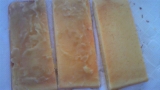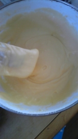 茜丸匠味シリーズの「あんこ」を使ってお菓子作りをしてみました! その名も、 「チーズと餡子のハーモニーサンド!」笑 ネーミングセンスはあまりありません… まず材料です ■材料 あんこ(初恋りんごレモンあん) 小麦粉 100g 卵 2個 カッテージチーズ(裏ごしタイプ)80g[100gでも可] バター 40g 砂糖 80g ベーキングパウダー 小さじ1 バニラエッセンス 適量 ■作り方 ①カッテージチーズとバターを混ぜてクリーム状にして砂糖を入れる (混ざりにくい場合は軽く湯せんにかけてみてください) ②卵をちょっとずつ入れて混ぜ、バニラエッセンスを適量加え ふるいにかけた小麦粉+ベーキングパウダーを入れ、滑らかになるまで混ぜる ③バターを塗ったパットの上に平らに広げ、余熱160℃に熱したオーブンで約25分焼く ④焼き上がったら、等分に切って、あんこ(初恋りんごれもん味)を塗って 3枚に重ねて切る ⑤完成!!!! 後は美味しく食べるだけです チーズは80gよりも100gほど入れた方が濃厚になっていいかも 今回は初めて作ったので控えめにしてみました あとは、生クリームを入れて焼くと生地が柔らかくなるかもなーと とにかく「初恋りんごれもん味」のあんことチーズ入りの生地のマッチ具合がなかなかGOODでした! 目の前にあると、ついついパクパクと口に入れてしまう、ほっとするような甘さの美味しさ 是非皆さんも作ってみてください あんこ専門メーカー茜丸ファンサイトファンサイト参加中 続きを見る ['close']
