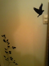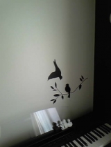 ラブソングウォールステッカー2780円(black)の紹介ですこのお店で1番の人気商品らしいです1枚のシールが貼られた大きいシートと同じ大きさの透明のシールのシートが1枚届きますその透明のシールを黒い鳥さん達の上からキレイに貼りますで、好きなカタチにチョキチョキ壁をキレイに拭いてしっかり貼付けますで、透明のシールの上から布でごしごし!して剥がすとキレイに貼れた( ´艸`)とっても簡単!★白い壁にワンポイントの鳥さんがいいねピアノ弾くのも楽しくなりそうやゎ♪玄関にも貼ってみたよ玄関の電気のスイッチだよって分かりやすいように鳥さんを全体的にはこんな感じんもちょこちょこオシャレやん(≡^∇^≡)ウチは壁が黒と白のペンキ塗りで、家具や家電もほぼ黒か白だからしっくりするシールやでマンションでも大丈夫だからウォールステッカーっていいよね色んなとこに貼ると部屋の一角の雰囲気がすごく変わってオシャレになるし本当にお手軽にイメチェンできるよヾ(@°▽°@)ノしかも壁が汚れてたり落書されたりしててもこれでオシャレに隠せるしねこうゆうシャンデリアのもめっちゃかわいくない?他にもいっぱいかわいいのがあるし、子供部屋にも良さげなのあるからHPだけでも見てみてテンションあがるよタンタンデロファンサイト応援中 続きを見る ['close']