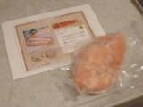 紀州うめどりを使った燻製「スモークチキン」をお試しさせていただきました♪届いたのはこちら! 冷凍で届きましたので、冷蔵庫の中で半日かけて解凍し、早速