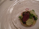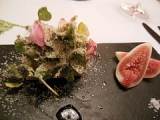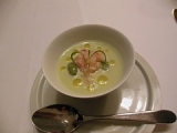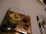 ミシュラン星付きのため外国の方のお問い合わせ 来店が多いとのことで私の英語教室にメートルドテル が英語を学びにきてくださっていた 西天満のフレンチの名店 アキュイール 突然、20121115閉店のお知らせを拝受しました あれほど予約がとりにくい状態で流行っていておいしいのに、、、 生徒さんはどうなさるのか 気になって気になってすぐ連絡をとり、閉店まであいてる週末はありますかと ボーイ弟が生まれて以来初めて 夫と二人でのdinnerを予約しました 前回訪れたのは、ボーイ弟が生まれる2か月前スタッフの 女性の方が 「前回は赤ちゃんが間近でしたがおいくつになられました?」 そう2年もたつんですね その間も私のお友達の席をとっていただくことはありましたが、 自分が行くのはこういったお知らせをうけたことが 良い機会になりました 最初にアキュイールファンさんがほっとするでしょうからお伝えすると、、、 西天満のお店は、クローズではあるけれど、北摂へ移転して、新たに もちろん同じオーナーシェフでオープンするとのこと そしてその繊細でかつフレンドリーな接客でファンが多い メートルドテルの大林さんは大阪市内のもう少しカジュアルなフレンチレストランにお勤めになるということで、そこなら子供つれでもうかがえるかな パリのビストロのギャルソンのような大林さんもまた素敵だろうと思います さて、もうわくわくのフレンチ 本当に、こんな空間はひさしぶりです 日曜の19時過ぎ、相変わらず見事な満席状態でした 現在メニューはおまかせの 10500円 +サービス料のみ 前のようにメインのセレクトなどもありません 今日だけはいつもは夫の運転手の私も飲ませてもらいますと、 ワインはおまかせで トータルで3杯分にと大林さんお勧めのシャンパン白赤 さらにデセールワインなどたくさんの種類をのみくらべさせてくださいました 半個室をとってくださってそこだけ異空間 シャンパンはヴランケン社のドゥモアゼル * 最初の一品は オードブルのまえのオードブル バターナッツかぼちゃのヴルーテ ウイキョウのサブレの上にさんまのリエット クミンのグジェール かぼちゃのクリーミーで甘いスープ * 2品目はオマールのロワイヤル丹波黒豆のソース 下には冷たくオマールの味がする茶碗蒸しが 合わせて2杯目は白ワイン ルシュクレクールの絶品パンがあつあつで提供されます たくさんたべたいけど、ここで抑えないと前回 の教訓をいかして、、 * 3品目 蒸し鮑と焼き茄子のクーリ アワビ(キモの味がしたソースでした)の下にちゃんと焼きなすの味がするピューレ 上には蓮芋やきゅうりの香りのハーブなど * 4品目 リードヴォーのソテー いろいろな茸と五穀米のリゾット これぞ秋!そして大好きリードヴォー 大林さんとは、よくレッスン中にリードヴォーやフォワグラが好きなんですと話していたのですが、ここで会えるとは! 焼き肉屋のシビレがリードヴォーなんですよとおしえていただいてラッキー! これにはやっぱり赤ワインがあいました * 5品目 待ち焦がれていたフォワグラのミルフィーユ仕立て これがトップの写真です 今回 フォワグラとホタテのスープをこちらの看板料理に変更してくださいました フォワグラとラスクのようなかりかりパン(油をじっとりしフォアグラのテリーヌの層の間にサクサクのパンを挟んで、ファグラのねっとりした食感とサクサク感のコントラストを楽しむ一皿 いちぢくを添えて、かついちぢくの香りを写したワインベースのソースを さすがだわ これに組み合わせてくださったのが1988年のソーテルヌ めちゃくちゃ芳醇、、、色もあじもまったりしています ここまでがオードブル、もうおなかも心も大満足なんですが、やっとこれからメインです、、、 とにかくこのレストランの問題があるとしたらどれもおいしく またあまりに親切な接客に がんばって食べてしまうことです 2日にわけて食べたいくらい、、、 この夜から一週間ほどはダイエットしなくてはいけません 健康食品サプリメントファンサイト参加中 「カロリーナビ」と「ラカントS」 続きを見る ['close']