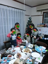 神戸などちょっと遠くに住むお友達と夕方からの誕生会 & 大人はクリスマスをしました