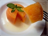 ブランドコレクション 『新品種オレンジ春峰』 今回はモニター第34弾!和歌山県産まれの新品種!清見×水晶文旦=「新品種オレンジ春峰(しゅんぽう)」の紹介です 水晶文旦のさわやかな香りと、ハッサクのようなさっぱり感、そして清見のコクが混ざり合った味です味はまろやかで上品な甘さと柚子に似た芳香が特長です まずは果実は完熟なので味付けせずフレッシュのまま、果汁でジュレを作って和えてみました新品種「春峰」味は甘いボンタンって感じ粒が大きくてプチプチ感がたまらなく、甘くて美味しい 次に作ったのは「春峰」のコンポートグラニュー糖の代わりに以前紹介したカロリーゼロの甘味料「ラカント」を使ったので、風味付けに使った蜂蜜とリキュールだけのカロリーなのでヘルシー じっくり煮たので皮も一緒にまるごといただけます春峰自身の味が濃くなって適度な酸味がさらに甘味を引き出してくれて美味でした コンポートの煮汁がとても美味しかったので、煮汁に水を足したもので紅茶を煮出してみましたオレンジが濃くて、微かなはちみつとリキュールとミントの香りがとっても高級感あって美味しい 最後にジュレ作った時に余った皮を使ってオレンジピールを作りましたこれもコンポートの煮汁を使って煮詰めて干してからラカントをまぶしたのでほとんどカロリーゼロ^^従来のオレンジピールのような強い甘味はありませんが、ほろ苦くて甘くて美味しかったできればチョコつけたかったですね^^今回は色々作ってみましたが、素材がいいと何しても美味しいですね新品種「春峰」オススメです♪ブランドコレクションファンサイト参加中ランキング参加中!1日1クリックしていただけると元気いっぱいになります♪ にほんブログ村 続きを見る ['close']