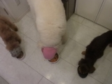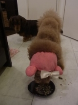 今日のワンコごはんは焼うどん 材料 豚ひき肉 うどん 人参白菜 ごま油 以上 今朝は、おうどんを食べてパパと選挙へ なのでワンコごはんは残ったおうどんを再利用 おうどんやパン、パスタなどは塩分が含まれてるのでNGという人もいるけど、我が家では だってフードにだって(NAは)たくさん含まれてるし、むしろ細かいことまで言うとお肉なども成分的にはタンパク質が多いけれども、ちゃんとナトリウムだって含まれてるわけでしょ ちなみに、人間レベルの塩分はワンコのような元肉食獣だった犬にはあまり問題がないようです(獣医さんに教えていただきました) だから そういう細かいところを気にするよりは、おいしい、楽しい、HAPPYを重視した方が我が家的かな?って 確かにワンコは私たちに比べて体も小さいし、命も短いことは確かです その命を節制して長く続けさせるという事はすごく大事で私も重視してることでもあります かといって そこばかりに縛られて、人生を(犬生を?)楽しめないなんて超ナンセンス 人も犬も楽しむために生まれてきたわけであって、片方のみが節制しっぱなしっていうのは、いかがなものでしょうか? だからといって、犬を子供や一人の人間として扱えってわけでもないんじゃないんですよね 私が思うのは 犬と人間の心地よい共生(あ、選挙っぽくなってきちゃった!!) 犬らしく幸せに生きられるようにフォローし、人間らしく生きられるようにフォローしてもらう(癒してもらう) それができたらすごく幸せだなと思います 私もそろそろ、そういうことについて深く追及して生きていきたいと思っています (あ、近いうちに出馬する? ないない絶対ありません) さてさて、今日は選挙から帰ってきてパパと二人で大掃除 その後、ワンコたちのクローゼットのお片づけも 破れたところを縫ったり、いらないものを処分したり、、、 トリミングの学校に通ってからはほとんどお洋服を着せてない我が家ですが、実はワンコのためのクローゼットを持つほどの洋服持ち ちなみにこの子は男の子ですが、、、 どう見ても女の子だよね(、、というより、手入れの悪さが気になる) それから ランチ君がうちに来たことも、お洋服着なくなった理由のひとつかも? スタンプーって毛玉ができたら、マジ大変だから、、、、 (横でパパが毛玉と格闘中) それに、これだけサイズバラエティーがあるとお揃い揃えるのってほぼ無理 唯一のおソロが 長瀬先生に頂いたこのチョーカーのみ これ、そういう意味でもすごく大切な記念かな? ワンコにもおいしいものあげたくなってきた? 【コジマ ホームメイドシリーズ】ワンちゃん用手作りパン♪【モニター30名様募集】 そんな方はポチしてみて ワンコと一緒に人生を楽しめるかも 続きを見る ['close']