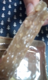★せっかくブログを始めたので主婦の好奇心を発揮してモニターしてみるよ★11010438656html">モニター第52弾 今回試させていただいたのがこちら 和菓子と甘味 茶丈藤村 カシューナッツ入り黒糖もち「寺辺もち5個入り」 先週は4日間ほど実家に帰っていました 戻ってみたら届いてましたよ、ぷつぷつナッツ入り黒糖もち 雨の中、移動で疲れた身体にこれは嬉しい! ご丁寧に「室温1625℃にて1時間くらい経ってからお召し上がり下さい」と 自分で受け取ってないので微妙な所だけど…たぶん、ベストな状態で頂きました 渋い緑茶を淹れて…ほらぁこのぷにぷに感ぎゅーっっと伸びます (ピント合ってないですね) つきたてお餅というわけではなく、上品な甘さになんというかコシのある柔らかさの求肥 和菓子にカシューナッツってどうかなぁ?ってちょっと思っていたのだけど、 ピーナッツやアーモンドのようにカリカリ過ぎず、奥歯で軽くぷちぷち潰れるカシューナッツが香ばしい ちょっと物足りない?って思うような軽い甘さでも、ひとつふたつと手が伸びる、危険な美味しさです これは子供も大人もお年寄りも好きなんじゃないかなぁ 最初に頂いた時は緑茶で残りはコーヒーで頂きました お茶だけじゃなくコーヒーにも合いますよぉ 寒い季節、熱いお茶を飲みながらほっこり出来る優しいお菓子ですおススメ! 茶丈 藤村 【こまめな小豆】ファンサイト応援中 続きを見る