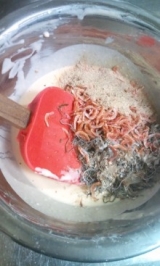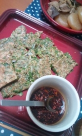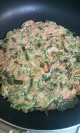 白玉粉と玉子で生地を作り、干し海老+かつお粉+山盛りのニラ+長葱を加えて、最後に大匙3杯のねこぶまんま 胡麻油でこんがり焼きました昆布の香りがいい!美味しいです お酒の肴にもぴったり 他にも味噌汁に加えたり、浅漬けに入れたり、煮物にふわりとかけたり、万能選手です!
