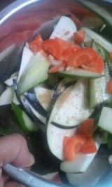 ★せっかくブログを始めたので主婦の好奇心を発揮してモニターしてみるよ★11010438656html">モニター第22弾 今回試させていただいたのがこちら 伊豆大島の塩メーカー「海の精」 季節の野菜を漬けちゃおう!海の精 浅漬けのもと サラダ感覚で食べられる浅漬けが大好きなので、さっそく作ってみました 作るというには簡単過ぎるけどね 浅漬けの素1袋の中に、小袋が10個10回も食べられるのは嬉しいな この「海の精 浅漬けのもと」は、砂糖や食品添加物は一切加えていないんだって 伝統海塩「海の精」と、とれたてのだし(北海道産の利尻昆布と羅臼昆布、国産の干し椎茸)、 純米みりん、純米料理酒が入っているの 化学調味料コテコテだと蕁麻疹が出ちゃう、現代生活に適応出来ない私にはありがたい その上なんと、腸内環境を整えてくれる乳酸発酵液(大豆由来)が入っているので、 浅漬けなのに、長く漬けたキムチや白菜漬けみたいに腸内環境を整えてくれるんだって さて、何を漬けようか…冷蔵庫の野菜と相談 大き目の長茄子1本、今朝のサラダの残りのキュウリが半分、彩りに人参少し、 アクセントに生姜の微塵切りを さぁて、さて旦那さんの帰宅時間がせまっておりますよぉ なんと本当にたったの30分でしんなりシャキシャキの浅漬けが出来ていました ただし、野菜が多過ぎたみたいで味は薄め天然塩をちょい足ししたよ 結構な量の野菜を、さっぱりペロリと美味しく頂きました ふわふわしたサラダもいいけど、やっぱり日本人だもの、お漬物あると嬉しい これなら用意し忘れてもすぐ出来るよ ちなみに、ジップロックに少し残しておいたのを今朝食べました 味が落ち着いて昨夜よりも美味しかったよ多めに作って朝晩2回で食べてもいいみたい 手軽で美味しく健康になれる浅漬けの素、おススメです 海の精ショップファンサイト応援中 続きを見る ['close']