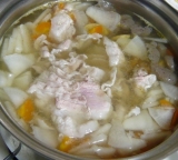 涼しくなってくると暖かい汁ものが欲しくなりますよねそんな時に欠かせないのがだし 今回わたしが試してみたのは多くのプロが推奨している「黄金の旨みだし 」 です これね、通販で話題の超絶品の本格和風だしなんですよ(∀) 簡単に作れておいしくて、しかも栄養もたっぷりのトン汁を黄金の旨みだし を使って作ってみましたo(^▽^)o 材料は冷蔵庫にあったものばかり、調味料の分量も適当、でもおいしくできちゃうのです♪ いや、レシピってほどのものでもないんだけどね()ゞ 人参、大根、こんにゃく、ごぼう、じゃがいも(里芋がなくて)、油揚げ、ネギを切っておきます 油揚げの油抜きとこんにゃくの下ゆでも忘れないでね 量は適当で好きなだけ入れてOK♪ 豚ばら肉も大きめに切っておきます50g位でもOKなんだけど、これは200gくらいです家族が肉好きなもので 鍋に好きなだけ水を入れて、ネギ以外の切った野菜も入れる わたしはいつも野菜を炒めたりしないで水を入れた鍋にそのまま入れています 沸騰してきたら豚肉を入れて、ほぐします あく、豚の脂などが浮いてきたら丁寧に取り除きます それから黄金の旨みだし を投入パックのまま入れて煮出すことももちろんできますが、中身も全部食べた方が栄養がとれるから、全部入れちゃいます いつもはだしを入れて煮た後にあく取りをするんですが、それだとが万が一黄金の旨みだし が表面に浮いてきたら、あくと一緒に取り除かれてもったいないからなのであくを取った後にだしを入れてみました それから味噌を溶き入れます味噌の量は少な目にして、しばらく煮て、具が柔らかくなったら一旦火を止めますここまででほとんど出来上がり わたしの場合、早めにトン汁を作っておいて、食べる直前にもう一度火を入れるんです なので、食べる直前に味噌を足して最終的に味を調えますそうすると味噌の香りがぐっとよくなるんですよあとね、ネギも食べる直前の火にかける鍋に入れます うちはいつも多目に作って2,3日はトン汁が続くんですけど、その時に食べる量の分だけネギを新しく入れるんですほかの具材は最初から鍋に入っていてどんどん柔らかく味が浸みていくのだけど、ネギだけは新しいのをねそれがおいしいんだもん(^∇^) はい、これが出来上がり鍋です↓ヾ(@^(∞)^@)ノ おいしかったよヾ(@^(∞)^@)ノ だしは2袋全部使ったけど、やっぱりこういうのはだしが決めてよね♪ 黄金の旨みだし販売サイト「プロレコ」 プロ推奨品専門店「プロレコ」ファンサイト応援中 続きを見る ['close']