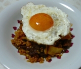 前回はきれいな色の茶巾包を作ってみたのだけど、今度はこんなの作ってみました2">焼肉ご飯 目玉焼きのっけ です(^∇^) これまた作り方はお手軽かんたん♪ 材料はこちら 卵1個 牛肉…60g キムチ…60g そして例によって 茜玄米ご飯お茶碗1杯 ①まず目玉焼きを焼いて塩コショウを軽く振っておきます ②同じフライパンをそのまま使い、肉を焼きます (足りないようなら油を足してからね) 肉に火が通ったら「焼き肉のタレ」で少し濃いめの味付けをし、キムチも続けて投入し軽く炒めます ↑ちなみにこちらが うちで使っている焼き肉のタレ ③キムチに続いて玄米茜ご飯も投入 暖かいご飯なので火を通す必要はなくて混ぜるだけでOK 必ずしもご飯全部に焼肉タレ味をからめ、染み込ませなくてもいいと思います その方が玄米の素の味も楽しめますし♡ で、全体が適度に混ざればお皿に盛ってくださいな ④最後に目玉焼きをトッピングで、出来上がりです♪ 人参で炊いた玄米ご飯食物繊維も豊富です 牛肉子供やパパも大好き キムチ発酵食品は体にいいよ 卵完全栄養食! 皆が大好きな焼き肉と目玉焼き 一緒に食べれば家庭円満です(^ε^) 注 おいしいからと言って搔きこまないようにしましょう 玄米ご飯はよく噛んで食べましょう(^∇^) ブランドコレクションファンサイト参加中 続きを見る ['close']
