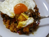 前回はきれいな色の茶巾包を作ってみたのだけど、今度はこんなの作ってみました 焼肉ご飯 目玉焼きのっけ です(^∇^) これまた作り方はお手軽かんたん♪ 材料はこちら 卵1個 牛肉…60g キムチ…60g そして例によって 茜玄米ご飯お茶碗1杯 ①まず目玉焼きを焼いて塩コショウを軽く振っておきます ②同じフライパンをそのまま使い、肉を焼きます (足りないようなら油を足してからね) 肉に火が通ったら「焼き肉のタレ」で少し濃いめの味付けをし、キムチも続けて投入し軽く炒めます ↑ちなみにこちらが うちで使っている焼き肉のタレ ③キムチに続いて玄米茜ご飯も投入 暖かいご飯なので火を通す必要はなくて混ぜるだけでOK 必ずしもご飯全部に焼肉タレ味をからめ、染み込ませなくてもいいと思います その方が玄米の素の味も楽しめますし♡ で、全体が適度に混ざればお皿に盛ってくださいな ④最後に目玉焼きをトッピングで、出来上がりです♪ 人参で炊いた玄米ご飯食物繊維も豊富です 牛肉子供やパパも大好き キムチ発酵食品は体にいいよ 卵完全栄養食! 皆が大好きな焼き肉と目玉焼き 一緒に食べれば家庭円満です(^ε^) 注 おいしいからと言って搔きこまないようにしましょう 玄米ご飯はよく噛んで食べましょう(^∇^) ブランドコレクションファンサイト参加中 続きを見る ['close']