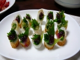 これ昨日の夕食の一部で、いい加減に作ったのだけど、さっぱりしてておいしかったのでご紹介するね♪ 材料は:ちくわ、大葉、ちょい足しジュレ梅、ちょい足しジュレ生姜 見てのとおり、ちくわを適当に切って、大葉を押し込んで、そこにちょい足しジュレを多目に絞り出すだけ ちょい足しジュレって、これです↓ 前にも紹介したけど、株式会社新進 の新商品なのですよ それぞれの味は、さっぱり爽やか薄味なので、どんなものにかけても失敗が少ないんじゃないかと思うわ 今回はしっかり味を付けたかったから多目に使ったけど、それでも全然辛かったりしないのです お手軽で便利です♪ 福神漬ならお漬物のしんしんファンサイト参加中 続きを見る ['close']