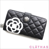 このカットワークの白いカメリアを手で隠してみたんだけど、そうするとシンプルな黒いだけの財布になってしまって、ちょっとおばさんくさかったのですよね(´_`。)