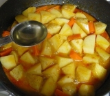 今頃新じゃが料理ってどうなの?って思ったけど、新じゃががスーパーにあったので作ってみました 新じゃがのサムジャン煮です クックパッドの大象(デサン)ジャパン株式会社 のレシピに載ってたので、新じゃがが手に入ったら作りたいとずっと思っていたのです(^∇^) 詳しいレシピはこちらです→( ´艸`) http//cookpadcom/recipe/1742117 大象ってね、こんな調味料を扱っている会社なのです このサムジャンの他にもコチジャンも扱っているから知ってるよね? 以前モニターとしてこのサムジャンを頂いた1ヶ月ほど前に知った「新じゃがのサムジャン煮」ですが、その時はもう新じゃがの季節は終わっていたみたいで手に入らなかったのですが、なぜか先日スーパーに売っていたのですよね、新じゃがが といっても妙に大きな新じゃがでしたが()ゞ それを食べやすい大きさに切って、ニンジンも適当に切ります ごま油を熱したフライパンで炒めてから サムジャン大さじ2と水1カップを加えて フタをして15分煮ます 15分経つと煮汁が1/3ほどになっているので、そこにみりん大さじ2を加え 緑のしし唐辛子も加えて汁けを飛ばします 途中で味見したら、味が薄いような気がしてサムジャンをさらに大さじ1加えました できた♪ こっくりとしておいしいですヾ(@^(∞)^@)ノ 後で気が付いたのだけど、最初に加えるのは水じゃなくてだし汁でした 水を加えたせいで味に深みがなくてサムジャンを足すことになっちゃったのかも ま、おいしかったからいいけど 普通のジャガイモでもおいしくできると思うけど、新じゃがは皮の部分がおいしいので、あればぜひ新じゃがでお願いしますo(〃^▽^〃)o 本格韓国調味料★チョンジョンウォン ファンサイト参加中 続きを見る ['close']