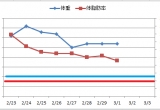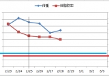 服部ヘルシーダイエット 毎日HATTORIヘルシーダイエット とウォーキングを続けています(∀) 3日坊主のわたしとしては珍しく続いています(;^ω^A だってHATTORIヘルシーダイエット のご飯はおいしいし、手軽だし、それに食べながら健康について思いをはせることや学ぶことがたくさんあって、ますます頑張ろう!って気になるんですもん(^∇^) では昨日のHATTORIヘルシーダイエット メニューのご紹介をしますね 朝食は: ほうれん草花巻 110kcal 野菜のトロトロポタージュ 97kcal 合計207kcalです 今まで冷凍の花巻をレンジで解凍すると少しパサついていたのですが、今回の花巻のレンジ解凍、本当にうまくいきましたやわやわ、やわらかいです≧(´▽`)≦ レンジにかける前に水にくぐらせるのは当然として、40秒チンした後、しばらくレンジの中にそのまま置いておいたら、ほわほわになってました 画像で見ても伝わりにくいのが残念だわあ↓ ふわとして柔らかいのですよ( ´艸`) 食べてみると、ほうれん草の味というより薬膳っぽい味って感じがしましたなんだか体によさそうな味ですそれを噛みしめて食べると、花巻そのものの味と薬膳(?)ほうれん草の味が口の中に広がって、甘くておいしいです(^o^) 野菜のポタージュの方は、いつも食べているクリームシチューみたいな見た目なので味も似ているのかと思ったのですけど全然違って、もっと優しい味わいでしたべたっとしてなくて、さらりとしたとろみですそのとろみも野菜をペーストにして作られているからこその自然なとろみなのです(^ε^) そしてジャガイモの味がして、これがおいしい♪ でもそれだけでなくて、なぜか少し和風の雰囲気の味がするので原材料名を見てみると、なんと大根も使われていました!その他には玉ねぎも入っています鶏がらスープと野菜、それにオリーブ油、無糖練乳、豚肉、食塩、ダイズ油、香辛料材料はこれだけですシンプルですね それなのにこんなにおいしいなんて(´∀`) ああ、わたしも料理上手になりたいものだ、と、しみじみ思いました (主婦だと、ついこんな発想をしてしまうんですよねえ()ゞ) 次は昼食です: 押麦粥 97kcal 豆腐のドライカレー 79kcal 合計176kcalです わい、カレーだ、カレーだいo(〃^▽^〃)o 時々カレーって食べたくなるよねえ これね、見かけはなんだか麻婆豆腐みたいだけど、味はしっかりカレーですしかも相当ピリリと辛いです辛いんだけど、豆腐も野菜もたくさん入っていて、それでバランスがとれているって感じかなもちろんお粥も一緒に食べるしね 豆腐はしっかりと硬めで木綿豆腐をさらに水切りした感じ、もしくは高野豆腐のような感じなんです豆腐なのに歯ごたえがあるのがニクイねえ(^∇^) 豆腐と野菜だけかと思っていたら、ちゃんとお肉も入ってたうれしいわ(´0ノ`) こちらは押麦粥真ん中に茶色の線が入っているのが押麦ですね 押麦がお粥の中に少し入っているだけで、食感が違って面白い食べごたえになっています白粥より少しだけ歯ごたえがあって、それが口に入ると、お、ここに押麦があるぞって思いながらモグモグするのがおもしろいです カレーといえば普通はご飯と一緒に食べるものなのでこの場合はお粥と一緒にとも思ったんですが、それぞれをじっくり味わいたいので、別々に食べました 豆腐のドライカレーを食べて「ピリッと来る」で、次に押麦粥で「優しい味だわあ」と、こんな風にねその方が食べるのに時間がかかりそうなのも好都合ですしね時間がかかればお腹もいっぱいになりますものね そして思惑どおり、食べ終わる頃にはお腹がいっぱいになっていました( ̄▽+ ̄)フフフ もちろん暖かいお茶もたっぷり飲みました↓ この日のウォーキング歩数は、今まで一番多かったです! この数字見た時、やっぱり!って思いました だって家に帰りついた時、すごく疲れてたんだもん 歩きすぎて、くだびれました ほどほどにしなくちゃね でもなんか、うれしい 7000超えたヾ(@^(∞)^@)ノ そして昨日夕方計った体重と体脂肪率は: 体重 前日比 プラス0.2kg 体脂肪率前日比 マイナス0.5% です どひゃっ!体重が増えてる(T▽T;) でも前日の減り方が急だったから、きっとこれは調整されてる途中なのよねと思いたい(´_`。) それより、体脂肪がこの3日間くらい膠着してたのが、ついに動いた!ってことの方が嬉しいわ♪ このまま同じような生活をこつこつと、とりあえずは1週間続けるぞ!(ω)/ エクセルで作ったグラフは縦軸の数字を消しててわかりにくいですが、目安として載せますね 下に引いた青い線が体重の目標で、赤い線が体脂肪率の目標です 体重は左の縦軸で表していて、05kg単位 体脂肪率は右の縦軸で1%単位です 今回のグラフには2月25日のところに縦線を入れてみましたこれはHATTORIヘルシーダイエット を始める前の日の値なんですつまり正式なHATTORIヘルシーダイエット は26日から始めています 最初からこのブログを読んでくれている方はご存じだと思うのですが、HATTORIヘルシーダイエット に取り組むこ