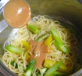 ピエトロから、春の新商品のスパドレ海老トマトクリームが届きましたヾ(@^(∞)^@)ノ それに、スパゲティもね^^ わたしにとってのピエトロは、昔はドレッシング、今はパスタソースです パスタソースと言えば、通販で買った蟹のスパゲティソースおいしかったなあ(^∇^) ↑ ホントにおすすめよ(´0ノ`) さて、こちらのスパドレ海老トマトクリームは、一見ドレッシングのようですが、その正体はスパゲッティに混ぜるだけの簡単さで、あっという間に作れてしまうスパゲティソースなのです わたしが前に買った蟹のソースはレトルトで、お湯で温める必要があったのだけど、これはそのまま混ぜるだけなのです 楽ちんです(∀) そんなわけで簡単に作れてしまった主婦の一人ランチ 簡単なのに、そうは見えないのだヾ(@^(∞)^@)ノ では を お湯を沸かして塩を適量入れ、そこにスパゲティを投入 袋に書いてある時間を守ってゆでます ゆでている間にアスパラとパプリカを適量、食べやすい大きさに切って、スパゲティがゆであがる2分ほど前にお鍋に入れて一緒にゆでます アスパラとパプリカはたまたま冷蔵庫にあったので使ってみましたこれがなければ、ジャガイモ、トマト、玉ねぎ、ホウレンソウなど、ほかの野菜を使ってもおいしいと思うよ♡ 鍋の中身をざるにザザッと移し、それをまた鍋に戻し、そこにスパドレ海老トマトクリームを加え混ぜます 1人分は大さじ2杯とのことなので、量って入れてみました が、このあと食べてみた結果、今度からは目分量で大丈夫と感じましたたくさん入れすぎても辛くなったりしませんね お皿に盛りつけて出来上がり簡単すぎです( ´艸`) 食べてみるとエビです^^ エビの香りがして、まろやかでおいしいです♪ 主婦の1人ランチは、たいてい前日の残り物だったりするから、今日はエビスパで嬉しい(^∇^) これに半熟卵を乗せれば完璧だったなあ…と思いながらも、どんどん食べちゃいました 今回はソースをそのままストレートに使ってみましたが、アレンジもいろいろできそうな気がします 生クリームを混ぜてコクを出したりもできそうだし、ちょっとした工夫で自分好みにできますよね スパゲティに使うだけでなく、ピラフやグラタンなんかにも使えるとのことで、それも試してみたいなあ あとね、夕食のおかずがちょっと足りない時に、粉ふき芋を作ってそれに絡めるってのもどうでしょう?簡単に作れるし、きっとおいしいと思うんですよねゆでたブロッコリーと和えるだけでもおいしいかも! おいしいソースが1つあると、料理を作るのがぐっと楽になって、助かるわ♪ 今回使ったソースですが、ピエトロは全国にたくさんお店もあるけど、オンラインでもお買い物ができるんですよ ↓ それに今、春のパスタ祭りってのをやっていて、パスタソースかスパドレを買って応募すれば抽選でギフトカードやパスタセットなどが当たります ↓ 春のパスタ祭は ここに張ってあるシールが 目印よ♪ スパドレ海老クリームトマトの感想と、春のパスタ祭りのご案内でした(∀) (今度の夕食に、粉ふき芋と、それにブロッコリーにも使ってみるね(^ε^)) ピエトロファンサイトファンサイト参加中 続きを見る ['close']
