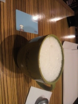 西新宿にある、タヒチアンノニカフェで一休みイリノイドティージンジャーミルクとバナナとおいものCOCOしるこをチョイス バナナに火を通すと、独特の風味