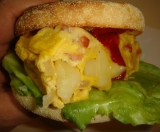 Pascoファンサイトファンサイト参加中 クール便で届いた冷凍されたパンは、 Pasco「おうち工房」のイングリッシュマフィンの モニターとして選ばれました 今まで色々なイングリッシュマフィンのレシピをつくってきましたが、 今回は、大好きなメニューでもある ジャーマンポテトとオムレツをコラボさせてつくった ジャーマンポテト風オムレツのイングリッシュマフィン 冷凍された焼成イングリッシュマフィンは、カチコチ 50分ほどお皿に並べて自然解凍させると いつものスーパーで販売されている超熟イングリッシュマフィンのよりも 簡単に2つに割ることができます あらかじめ温めておいたオーブントースターでこんがり焼くとこのような感じです 【ジャーマンポテト風オムレツ】 ◆材料(2個分) イングリッシュマフィン(2個) じゃがいも(1個) たまねぎ(1/2個) ブロックベーコン(60g) 卵(2個) 牛乳(大さじ3) オリーブオイル(大さじ2) ガーリックパウダー(少々) ドライパセリ(少々) 塩胡椒(少々) バター(適量) レタス(1枚) マヨネーズ(適量) トマトケチャップ(適量) ◆作り方 ①じゃがいも(1個) たまねぎ(1/2個) ブロックベーコン(60g)このようにカットし ②熱したフライパンにオリーブオイルを引き、オリーブオイルじゃがいもとたまねぎを入れ ③ガーリックパウダー(少々) ドライパセリ(少々)塩胡椒(少々)を振りかけ炒めます ④ベーコンを加え、じゃがいもが柔らかくなるまで炒めます 超熟食パンの点数券を集めてゲットした リサとガスパールのシリコンスチーマー を使います ⑤ボウルに卵(2個)を割り、牛乳(大さじ3)、塩胡椒(少々)加え溶いておきます ⑥シリコンスチーマーに④でつくったジャーマンポテトを入れ溶き卵を流し込みます ⑦フタをして電子レンジ500Wで2分、フタをとりピザチーズを加えフタなし500Wで2分30秒加熱します ふっくらジャーマンポテト風オムレツ ができました ふたつに割るとなかはとろり このジャーマンポテト風オムレツをイングリッシュマフィンにサンドします ⑧焼いたイングリッシュマフィンにバターを塗り、レタスをのせマヨネーズをつけ ⑨ジャーマンポテト風オムレツ をのせトマトケチャップをつけます ⑩⑨にイングリッシュマフィンをのせてバーガーのような ジャーマンポテト風オムレツ のイングリッシュマフィンの完成です♪ 見ての通りのボリューム満点の バッチリのおいしさ♥ サクッり!もっちり食感がとてもいいです!! このブログで公開している超熟イングリッシュマフィンのレシピ記事は 画像をクリックしてご覧くださいね♪ ご覧頂きましてありがとうございます ↓ポチっと応援クリック よろしくお願い致します! 食生活・食育 ブログランキングへ 続きを見る ['close']