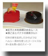 2011年11月10日 アンリシャルパンティエ 日本のスイーツ!? テーマ:├ケーキ 日本の美を追求したかのような ヘルシー素材を使ったゴージャスな 赤×金&黒×金のスイーツ アンリシャルパンティエ の秋のスイーツは ■紅芋と本和香糖の赤金ムース ■黒ごまとバナナの漆黒タルト ■紅芋と本和香糖の赤金ムース 「雅」をテーマに 優美な女性の着物姿をイメージした真っ赤なスイーツには、 チョコのかんざしが飾れています 上から見ればアイロンのようですが(笑) 断面はこのように 紅芋のムース、クリームチーズのブランマンジェ、紅芋のペースト 赤と紫でギョギョっとする感じですが、 紅芋の優しくほっこりした甘さに、 上品な甘みが後をひく本和香糖、 ふんわり香るオレンジの風味がたまりません ■黒ごまとバナナの漆黒タルト 「漆」をテーマにした 漆器のツヤ感のある黒で統一したスイーツにも トッピングされている金箔がとても豪華に演出 まさしく日本の美、艶々の漆に金箔 … 続きを見る