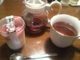 ハーブティ→写真で見ると茶色(紅茶色)ぽかったけど、ティーカップに注いでみると思ってた以上に赤っぽい色でした