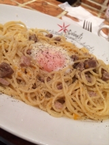 少し前に食べたイル キャンティのパスタ いつも前にメニューが出ているのでそれを見てから入ります 半熟卵と豚肉のボロネーゼ パルメザン風味 みたいな名前だったかと なかなかそそられる 半熟卵がベストな感じ 黒胡椒もイイ香りを漂わせています 豚肉もコロコロと入っていてイイですね 最初に卵を崩して混ぜ混ぜしました 程よく全体に卵が絡みました お味はパルメザン風味なのでさほど強くありません 卵のまったり感が好み( ´艸`) こちらの基本のランチメニューは スペシャルが1種類 お肉又はお魚のお料理 パスタが2種類 グラタン1種類 なのですがこの日は スペシャルの特製マヨネーズソースのハンバーグが 人気でした 私もマヨネーズソースが気になって迷ったのですがパスタに しました どんなお味のまよねーすソースだったのかしら お家で作るときに応用できそうだったので食べればよかったかしら でも、パスタもおうちメニューに加えましょ イルキャンティ 日本橋 1030022 東京都中央区日本橋室町1125 日本橋三信ビル ★モデル道端カレンさんオススメ★手作りギリシャヨーグルトキット(メーカー付き)♪ 続きを見る ['close']