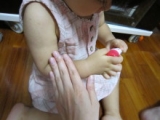 たっぷり足にも塗って全身日焼け対策です