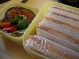 娘のお弁当、昨日と今日はサンドイッチの日ですご飯だと米粒が矯正器具に詰まって取りにくいと言うので、週に2度だけパンにしてます本当は毎日パンがい