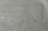 "491" border="0" alt="S9970009" hspace="5" class="pict">素肌畑エッセンスミルクマスク1枚(24ml) 530円(税別)素肌畑のフェイスマスクですローズのような香りがしましたストレッチ性があり、わりとしっかりしたマスクです白い濃密乳液に浸されているので、化粧水でお肌を整えた後に使用しますマスク時間は1015分です説明の字がグレーでとても見にくいです週に1度のスペシャルケアとして使うのに良いですストレッチ性のあるマスクなのでリフトアップ効果が感じられます厚みがあるせいか、マスク中に顎の下の方がはがれてきます美容液と乳液成分のマスクなので、うるおいを感じられました素肌畑エッセンスミルクマスク素肌畑マルシュールファンサイト参加中素肌畑マルシュール商品一覧 続きを見る ['close']