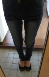 ほどよくお尻と太ももにキレイめのウォッシュ加工が入っててスリムに見えます