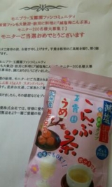 +こんばんは、みるくでっすヽ(´∀`)ノモニプラさんで +玉露園の減塩梅こんぶ茶をお試しさせて頂きました((´∀`))届いたのはこちら♪モニター当選のお手紙と梅こんぶ茶( ´艸`)玉露園さんの「梅こんぶ茶」は塩分30%カットの減塩なのですなので、塩分を気にする夫にもぴったり♪梅干しにもこだわっていて、紀州産の梅干しを使用しているそうですこれ1パックで22杯分も飲めます♪嬉しい((´∀`))裏面には説明書きが♪えーとなになに??え!アイスでも飲めるんだ!!知らなかったです浅漬けにもできるらしいですΣ(´▽`ノ)ノ中をのぞくと、梅肉というか梅の塊?がちょこちょこみえますまずは、1杯!ティースプーンに半分くらいに100ccのお湯を入れるとこんな感じ( ´艸`)おーいしーい!!減塩とは思えません普通の「梅こんぶ茶」♪そして梅の味がしっかり効いているような何と言ったらいいんでしょう梅とこんぶなので食欲をそそる味です(笑)空腹時には要注意!きっと白ご飯をざぶっと入れてさらさら梅茶漬けにしてしまうでしょう(笑)自分で濃さを調節できるのもいいですね♪上の写真ではなかなか分かりにくいですがせっかくなので職場でいつも色々差し入れをくれる先輩と飲んでみました!紙コップがよかったのか、光の当たり具合が良かったのかわかりませんがキレイに撮れた♪ほんのりピンク色でカワイイ( ´艸`) 濃厚なこんぶがまた良いんです「癒されるねぇ^^」と言いながら飲みました♪近々、お茶漬けに挑戦したいと思います(それまでもつのか?!、笑)この味を知ってしまったので、見かけたらきっと買ってしまうと思います( ´艸`)玉露園さん、美味しい梅こんぶ茶をお試しさせて頂き、ありがとうございました 玉露園ファンコミュニティファンサイト参加中 続きを見る ['close']