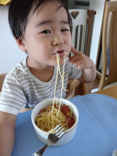 いつもトマト味が多いけど、今回はお昼に簡単コーンクリームスパゲッティ♪ 「おかーさーん!おいしーよー!」って言って小食の息子が珍しく完食してくれました! おかーさんうれしいよー!!