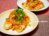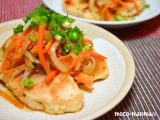 こんにちは モコですwidth="16" height="16" /> 祝日明けの金曜日って素敵ですね 明日また休みだ♪ 昨日は午前中はほぼ眠って、お買いものへの移動の車でも助手席でうとうと… 旦那さんの実家でみんなでごはんを食べて 帰ってきたからソファーでぐっすり… もう一日中眠くて眠くて でも たっぷり寝たおかげで 今日は目の下にコンシーラーを塗らずにすみました笑 今日も早めに寝て 土日は元気にケーキ焼こう さてさて 今日のレシピは 鶏と野菜の南蛮漬けです 先日 我が家に美味しいポン酢が届きまして 味付けはこのポン酢におまかせ たっぷり野菜をチンしてポン酢と和えて、焼いた鶏肉を次々漬けていくだけの簡単レシピです 冷めても美味しいので おつまみやお弁当にもおすすめですよ♪ 材料(23人分) 鶏むね肉 2枚 玉ねぎ 1個 にんじん 1本 万能ねぎ 5本程 塩 小さじ1/2 酒 大さじ1 小麦粉 大さじ5くらい 油 適量 ポン酢 50ml 作り方 【1】鶏むね肉をそぎ切りにしボウルにいれて、塩酒を加えてもみ込み10分ほど置いておきます 【2】玉ねぎにんじんを細切りにし、ボウルにいれてレンジで3分加熱します 軽く熱が通りしなっとしたらOK 【3】野菜にポン酢刻んだ万能ねぎを加えよく混ぜます 【4】フライパンに油を少し多めに熱し、鶏むねに軽く小麦粉をまぶして焼いていきます 【5】鶏むねは中までしっかり火を通し、焼けたお肉からどんどん野菜ポン酢に漬けていきます 【6】全ての鶏むねを焼いて漬け込みますラップをして30分ほど置いたらできあがり♪ 味付けはポン酢だけなので とっても簡単♪ お酢効果でお野菜もお肉もさっぱり美味しく頂けます 冷蔵庫で冷やして次の日食べてもまた美味しい 温めてごはんにのせてもいいですよ クックパッドにもレシピ書きました → ポン酢で簡単♪鶏と野菜の南蛮漬け 今回使ったポン酢はこちら チョーコー醤油株式会社の『香り立つぽん酢』です 3種類の柑橘果汁が、ゆず5:だいだい1:すだち1の割合で配合されていて、 普通のゆずポン酢と比べて、本当に香りが爽やかでいい香り 化学調味料無添加ってのも お気に入りのポイントです 冷奴やサラダはもちろん♪ 柑橘系の香りがお肉料理にもあいました 香り立つぽん酢 詳しくはこちらをご覧ください♪ チョーコー 香り立つぽん酢 300ml **** ランキング参加してます 『お料理頑張れ』の応援クリック ぽちっと頂けると嬉しいです にほんブログ村 ありがとうございます(ノД`。)ホロリ ぜひまた遊びにきてください **** 今日も読んで頂き ありがとうございました チョーコー醤油【香り立つぽん酢】 続きを見る
