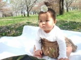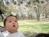 娘が生まれてはじめての桜 不思議そうに見つめる姿がすごく可愛かったです 来年は歩けるようになっているので歩いてお散歩したいです