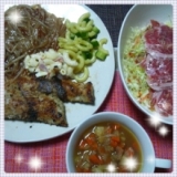 今日の晩ごはんtaame0918v/2492gif" amebaId="harewataame0918v" emojiId="2492" /> タラのムニエルもやしのニンニク醤油炒めマカロニのマヨ和え&バジルソース和え生ハムサラダ野菜たっぷりスープぽゎ、大皿に盛り付けることが多くって1人ひとり別に盛り付けることがほとんどないんやけど最近、ブロ友さんのご飯の紹介記事とか見てると一人ずつに盛り付けてる方が多くってその方がいいのかな??って悩んでます ムニエル少し焦げちゃったけど、美味しかった 最近、旦那さまがお魚を進んで食べてくれるから嬉しいです やさいたっぷりスープゎ玉ねぎ、ニンジン、ジャガイモ、ベーコンをたっぷり煮込んでコンソメスープにしました スープを飲んでるって言うより野菜を食べてるって感じにしました コトコト煮込んだ甲斐もあって美味しく野菜が食べれたよ このマカロニのバジルソース和えゎ このカルパッチョ バジルソースを使いましたソースを和えた時あんまりバジルの香りがしてこなくって大丈夫かな??って思ったけど口に入れた瞬間バジルの香りがしっかりしました 旦那さまが生もの苦手でカルパッチョができないから、このカルパッチョ バジルソースを使ってなにかできないかなって考えてた時にマカロニに和えることを思いつきました旦那さまも美味しく食べてくれたから大満足です 日本食研のファンサイトファンサイト応援中 続きを見る ['close']
