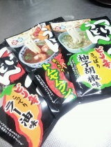 久しぶりのお試し商品が届いた 正田醤油さんから出ている「つけうどんつゆ」三種類 柚子胡椒味、トムヤムクン、ラー油 お昼にコンロをガンガン使って料理するのが辛い季節なので、簡単に出来るのがいいよねー♪ 結婚式の引き出物に入ってた紅白のうどん乾麺があったのでそれを使って なんかメデタイ 豆太郎にラー油味のつけうどんをつくりやした つゆは水で溶くだけ濃さはお好みでうどん茹でても五分でできちゃうわぁ 小ネギとごまは好みトッピングでうどんの横に未だに終わらないきゅうりキムチを無理矢理添えて 笑 豆太郎には辛さはマイルドっぽい(激辛党)でもツルツルとあっという間に完食 私的にはトムヤムクンが気になる 夏は麺のお世話になりっぱなしだわね楽だし便利ー よく暑くて食欲がないとかTVで聞くけど、私そんなんないぞ暑くても食欲旺盛むしろ食欲減退してみたい 正田醤油のファンサイトファンサイト参加中 続きを見る ['close']