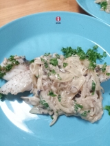 久しぶりに食材モニター当たったー タカナシの特選北海道純生クリーム35 & 北海道クリームチーズ セット このクリームチーズ高そうーでもおいしそーう クリームチーズ買うとそのまま食べちゃうんだよなー 要注意な食べ物だわ で、週末は生クリームを使ってちょいとオサレな料理を作ってみた 「タラのソテー レモンクリームソース」 材料二人分 生たら 2切れ 玉葱 2分の1個 しめじ 2分の1個 パセリ 多めの適量 生クリーム 70cc 白ワイン 70cc オリーブオイル 大さじ1 塩コショウ 適量 バター 20g レモン汁 小さじ1 1 玉葱は薄くスライス、しめじは粗めのみじん切り、パセリもみじん切り生たらは塩コショウ少々して水分が出てきたら取り除く 2 フライパンにオリーブオイルを入れて中火で色づくまで両面焼く白ワイン3分の1量入れてアルコールを飛ばす 3 タラを皿に取り、玉葱を入れて炒める油足りなかったら少々足すキツネ色になるまで炒め残りの白ワインも入れるしめじも投入 4 ワインが蒸発してきたらバターを入れて塩コショウで味付け 5 生クリームを入れ弱火で少しだけ煮詰めるレモン汁をいれパセリをいれ混ぜて完成 付けあわせでじゃがいもがあってもいいかも!たらとジャガイモの料理もあるので絶対に合うはず 淡白なタラと濃厚な生クリームって合うんだよねー♪レモンも入って爽やかに 生クリーム使うとクリスマスっぽいなー 週末の晩御飯 タラのソテー レモンクリームソース オニオンスープ ガーリックライス セロリとツナとコーンのサラダ こーゆーこじゃれた料理を出すと毎回オドオドし始める豆太郎なんだけども 笑 今回も「何コレ?何コレ?」 と不信感満載の顔で凝視してたわ 食べたら「美味しいー」となったのでよかったよかった 味付けは割りと適当なので各々調整してお試しあれ タカナシ乳業ファンクラブファンサイト参加中 続きを見る ['close']